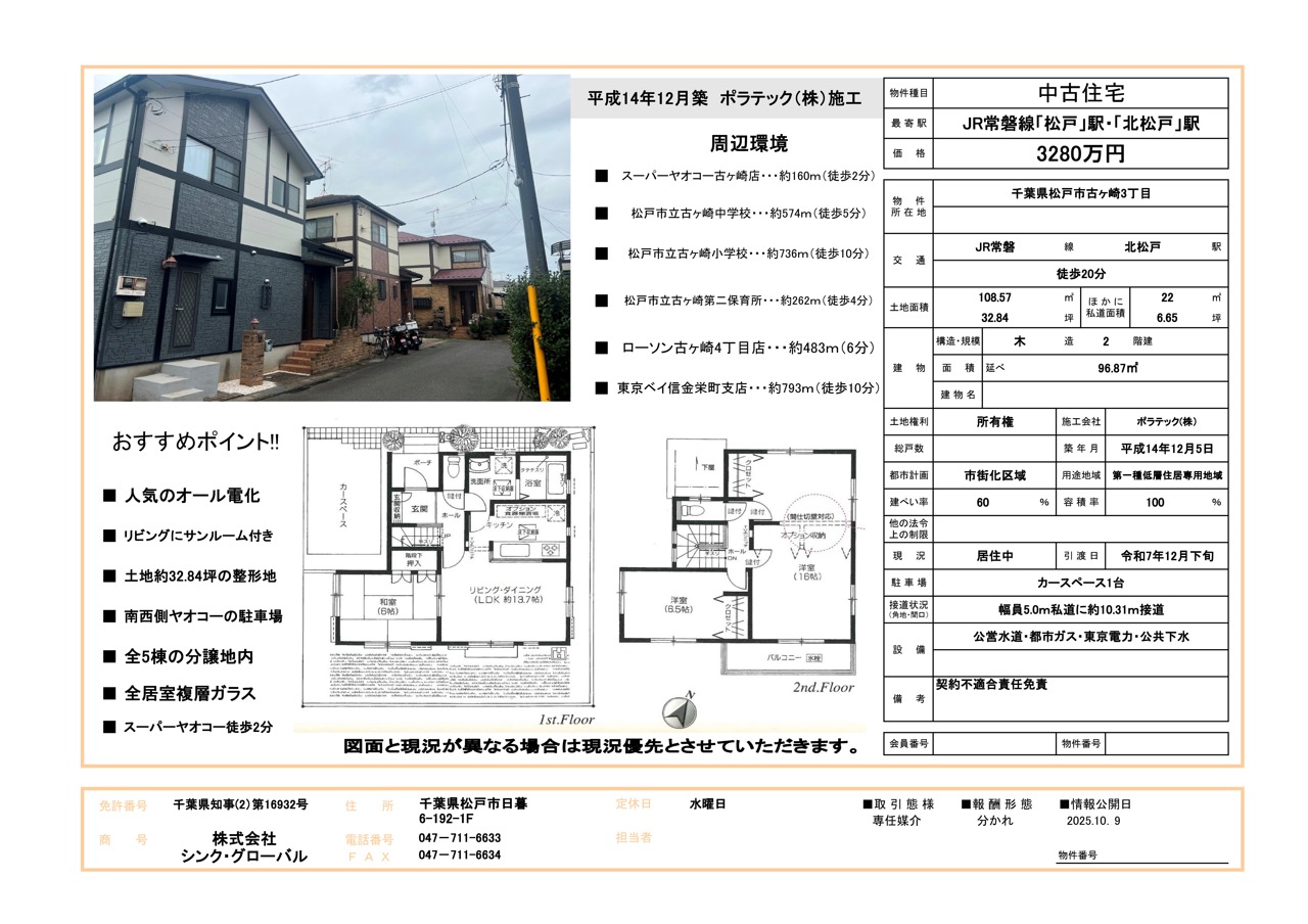 | 交通 | 常磐線「北松戸」駅徒歩20分 常磐線「松戸」駅徒歩25分 |
