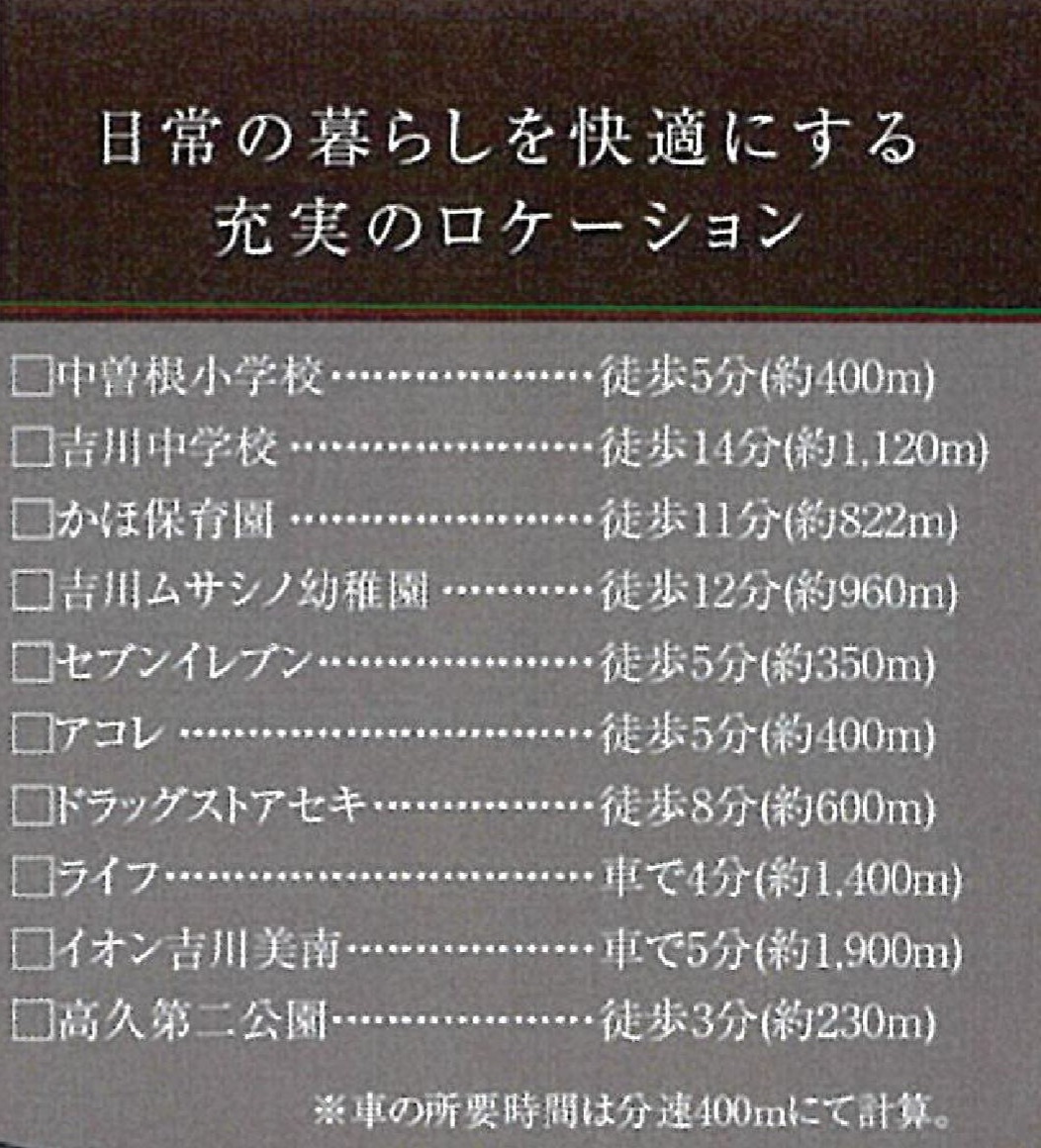 小学校800m以内保育園・幼稚園800m以内コンビニ400m以内
