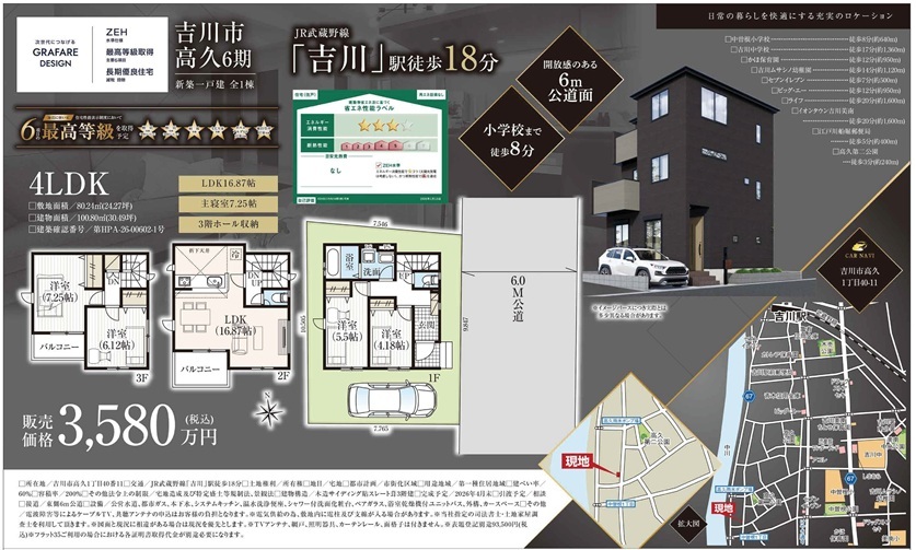 建物はZEH水準・住宅性能表示制度において6項目最高等級取得・長期優良住宅の安心してご購入できる物件です。