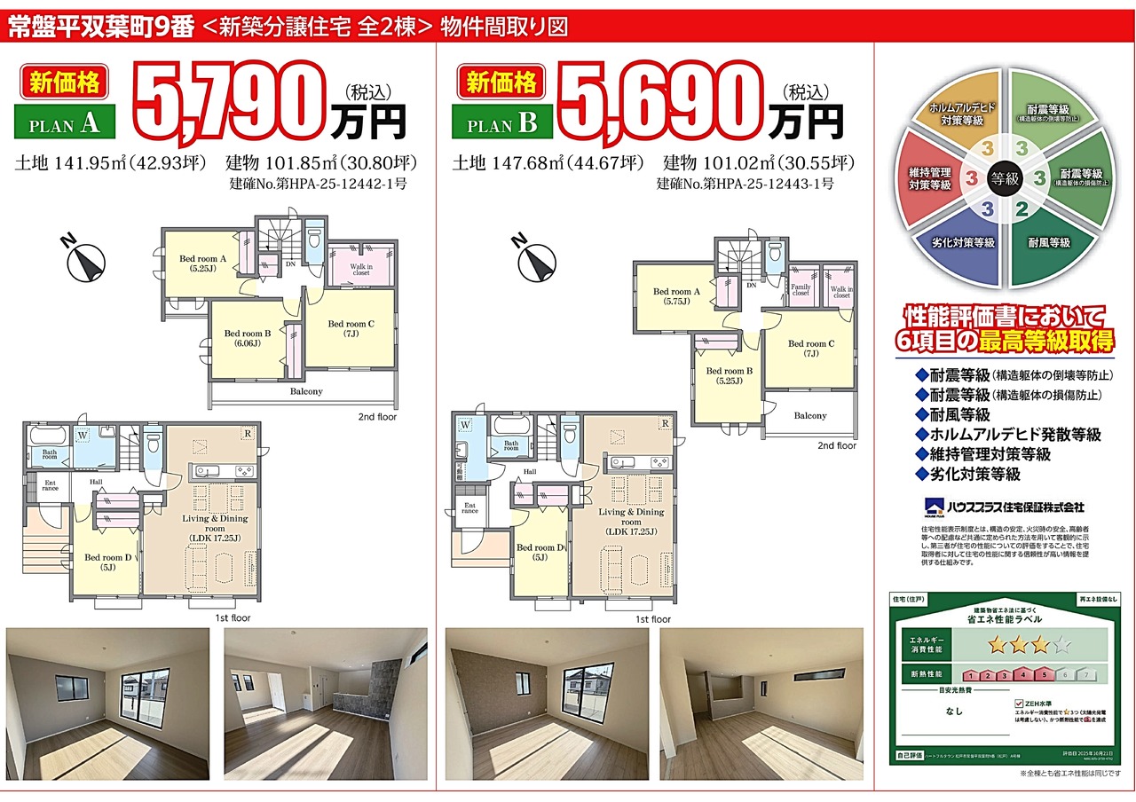 | 省エネ性能表示 | エネルギー消費性能:★★★ 断熱性能:5段階 |